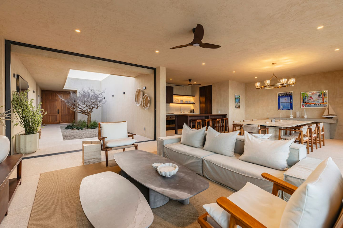 This East Cape beachfront home is a gem. Direct beach access, stunning Sea of Cortez views, and total privacy — yet still incredibly comfortable and family-friendly. The interior is spotless, beautifully designed, and feels high-end the moment you walk in. Clean lines, open spaces, fully equipped kitchen, comfortable bedrooms — everything is immaculate and thoughtfully curated. Key elements in our stay: - Pickleball and basketball court (huge hit with friends and kids) - Safe, swimmable beach right out front - Outdoor dining, lounge areas, and firepit - Pro tip: We used the UTV 4x4 available on the property and it was a game changer. Not only was it convenient for exploring the beach and surrounding area, but it saved us well over $150 per day compared to renting from an outside dealership. Absolutely worth it. Will def book again