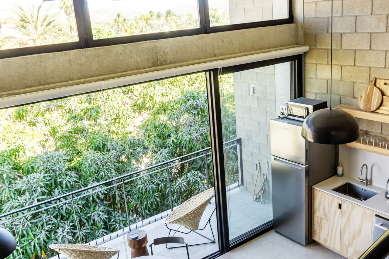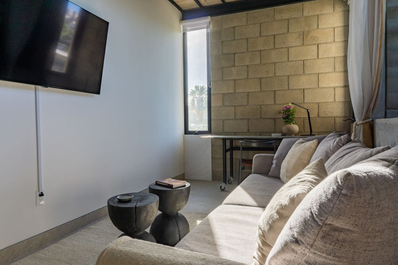 Enjoy a stylish LOFT experience at this centrally-located place in the heart of San Jose del Cabo. Minutes walk to beach & the charming downtown full of restaurants, cafes & bars. Modern earthy NEW construction overlooking peaceful gardens. Fully equipped kitchen, 1 loft bedroom, 1 den, 2 full bathrooms, private terrace, designer furniture, split AC, washer/dryer, rooftop w/ BBQ & 1 free parking spot. Unique rammed earth home created by renowned RIMA design group. Fully equipped kitchen, 1 bedroom with Tempur-Pedic king size bed, 1 den w/ queen sized sofa bed and work desk, 2 full bathrooms with tub & indoor/outdoor showers. Private terrace overlooking mango trees, designer furniture, split AC, in-unit washer/dryer, rooftop BBQ & 1 free parking spot. Fast Wifi, smart 55" TV, Sonos beam sound bar & Apple pod for music. Lux linens. Everything you'll need for a restful and enjoyable stay. Property manager nearby for assistance and emergencies. The whole apartment, rooftop and 1 free parking space. You can email or text me directly. Many say San José del Cabo is Cabo San Lucas' more elegant twin sister. Separated by the Corridor and situated just south of the airport (15-20mins away), the city is commonly known as the "Old Town," exuding traditional Mexican charm while also impressing with its luxurious new resorts and wonderful dining scene. The town is surrounded by warm hospitality and natural beauty of beach and desert. Once you've strolled the cobblestone streets, you'll feel the friendliness of this vibrant town for yourself. Experience Old World Charm in San Jose del Cabo: A large, open cobblestone area lined with towering palms characterizes the space that makes up the San Jose del Cabo Main Square. On the west side of the square lies Iglesia San José (Saint Joseph Church), in addition to a bandstand, outdoor amphitheater, towering palms, and the Palacio Municipal (city hall). On the outskirts of the square and along the surrounding streets you will find restaurants, art galleries, jewelry stores, and shops. A variety of cultural events frequently take place on the square’s bandstand and outdoor amphitheater, making this an entertainment spot to keep on the radar. Walking to town center and beaches nearby. UBER is cheap and convenient. Or rent a car (we like Cactus Car Rental). Property manager nearby for assistance and emergencies.