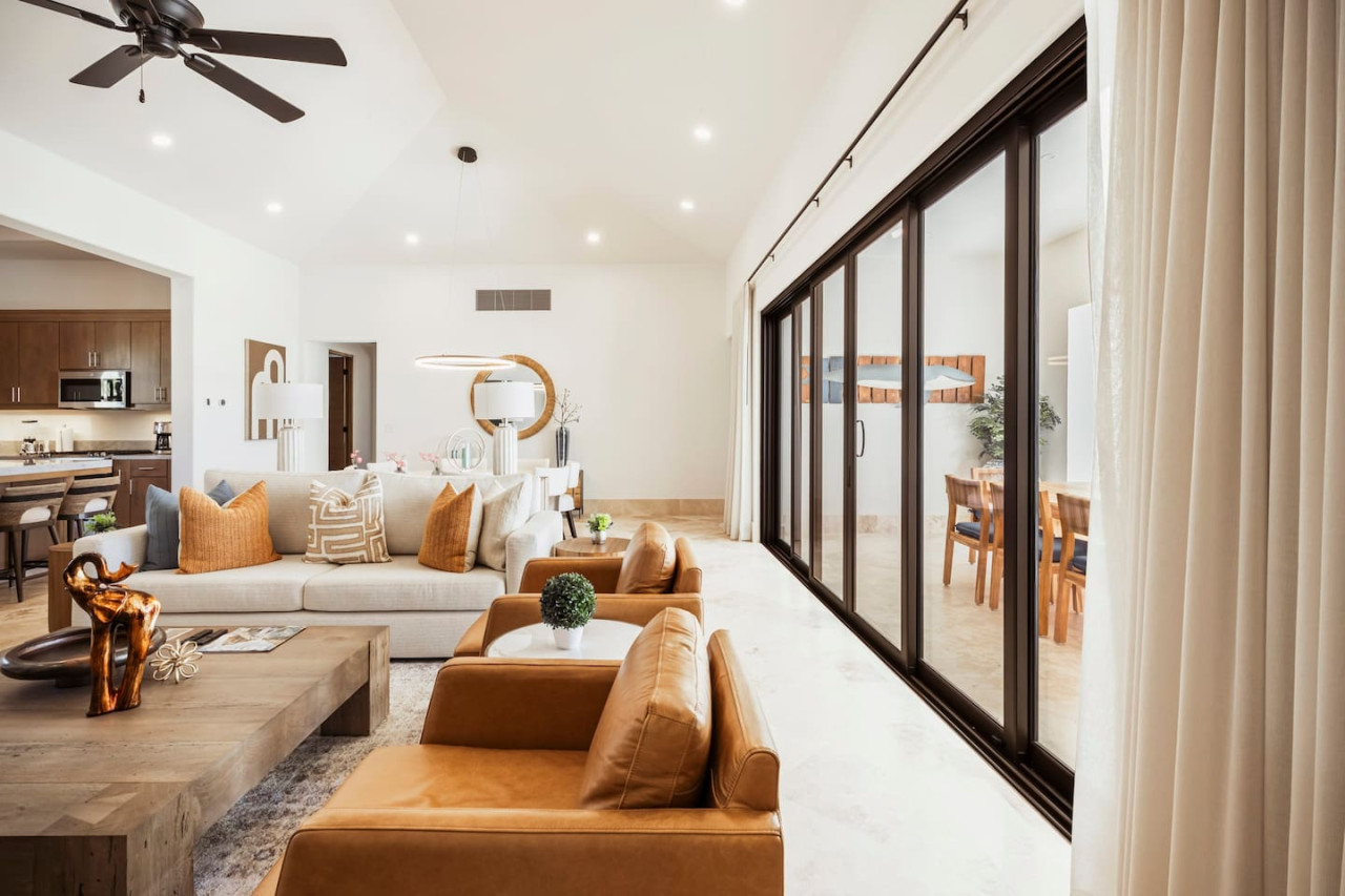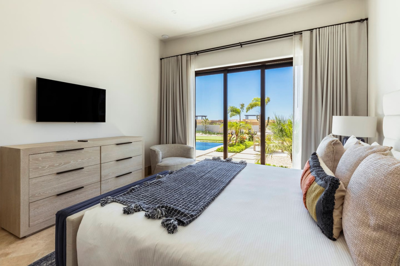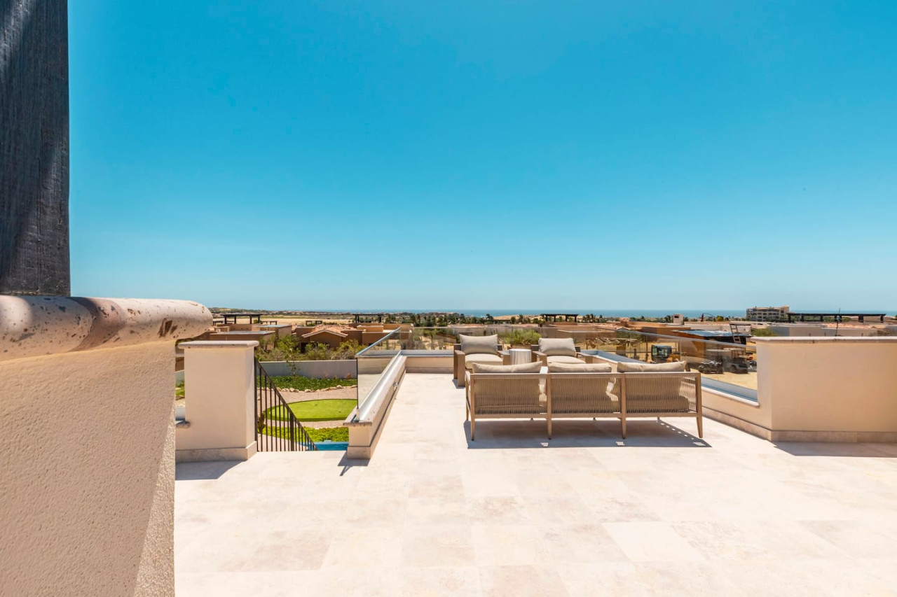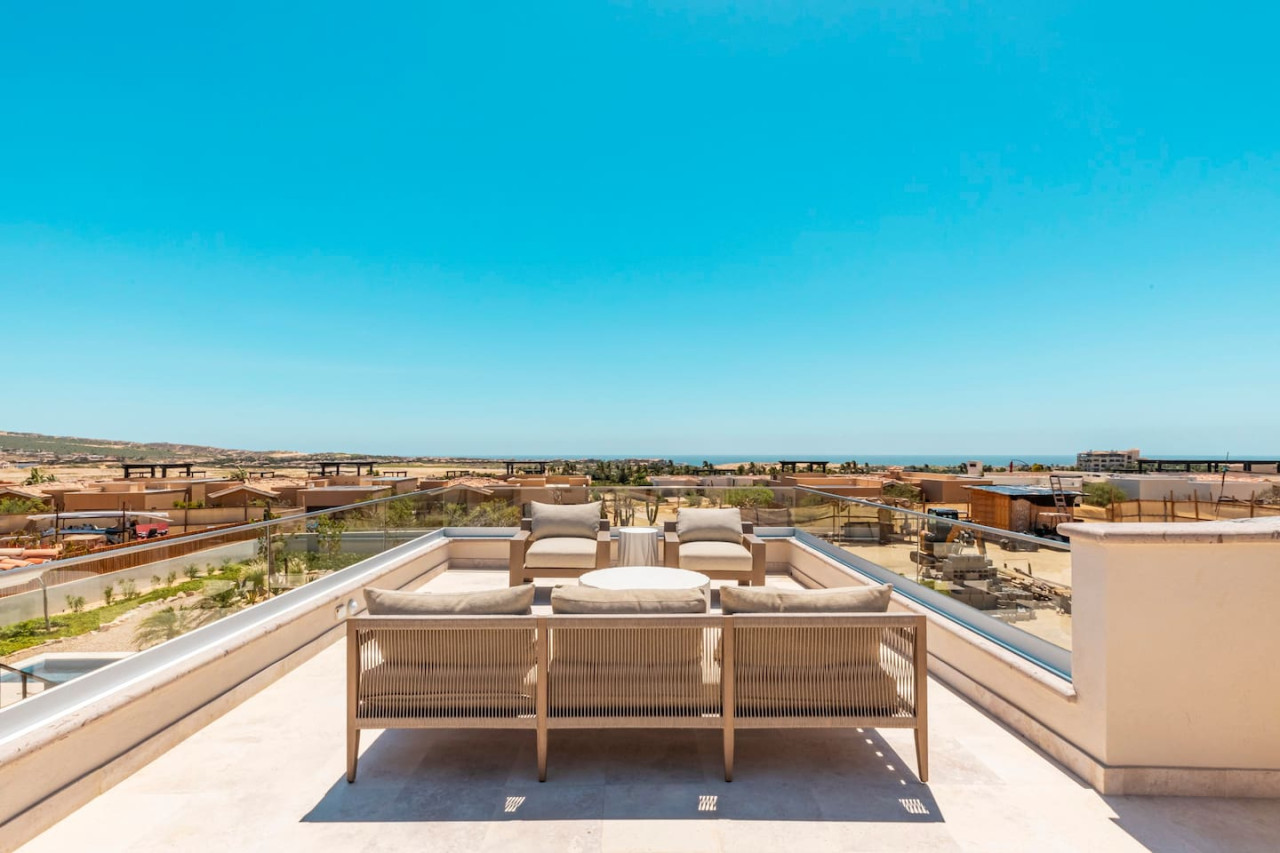 Brand new 4 bedroom villa in Diamante: - 4Bedrooms - 10 Guests - Private pool and hot tub - Fire Pit - Rooftop terrace - BBQ Grill - Mini putt Common Areas - Lagoon Pool - Golf - Kids Water Park - 8 Restaurants This stunning 4-bedroom villa nestled within the prestigious Diamante community in Cabo San Lucas, Mexico blends contemporary design with the natural beauty of its surroundings, offering breathtaking views of the Pacific Ocean and the renowned Dunes Golf Course. Bedroom Layout - Master Bedroom 1: King Bed , En Suite Bath /Exterior Shower, Ocean View, Terrace Access, A/C, TV - Bedroom 2: King Bed, En Suite Bath /Exterior Shower, Ocean View, Terrace Access, A/C - Bedroom 3: King Bed, En Suite Bath, A/C, TV - Bedroom 4. Two Double Beds, En Suite Bath, Terrace Access, A/C Other Areas: - Exterior pool and hot tub - 💧 - Exterior dining area and grill - 🥩 - Rooftop terrace - 🥂 - Mini Golf - ⛳ - Fire Pit - 🔥 The spacious open-plan living area is perfect for entertaining, featuring high ceilings, elegant finishes, and large sliding glass doors that lead to an expansive outdoor terrace. Each of the four bedrooms is a private oasis, complete with en-suite bathrooms, walk-in closets, and direct access to the pool or garden area. The master suite, with its panoramic ocean views, offers a serene retreat with a spa-like bathroom and a private balcony. The outdoor living space is designed for relaxation and enjoyment, with an infinity-edge pool, jacuzzi, and multiple seating areas. A gourmet outdoor kitchen and dining area are perfect for hosting alfresco dinners while watching the sunset. The villa also includes a fully-equipped kitchen, a media room, and a two-car garage. Located in the exclusive Diamante community, residents have access to world-class amenities including a private beach, golf courses, a fitness center, and a variety of dining options. Whether you're looking for a peaceful getaway or a vibrant social scene, this villa offers the perfect blend of luxury and lifestyle in one of Cabo San Lucas's most sought-after destinations. Guests can access all areas within the property: Through airbnb platform or selected contact information. Villa has surrounding construction; noise is NOT an issue as windowpanes are Duovent structures.