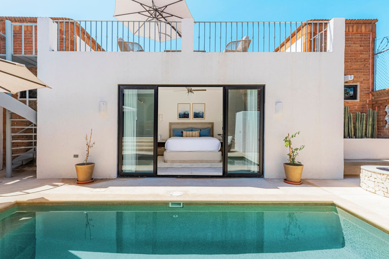 Experience the charm of historic San Jose del Cabo in our beautifully renovated home. Perfect for families or groups, this spacious retreat offers modern comfort with classic elegance. Just 1-2 blocks from top restaurants, art galleries, and shopping, you'll be immersed in the vibrant local culture. Enjoy a unique stay in this one-of-a-kind property, blending historical allure with contemporary amenities. Ideal for a memorable getaway in the heart of it all! - Bedroom 1: King, En Suite Bath, Terrace Access, A/C, TV - Bedroom 2: Two Individual Beds, One Pull out Individual Bed En Suite Bath, A/C - Bedroom 3: King, Hallway Bath, Terrace View, A/C, TV - Guest Room - Pull out sofa bed in living room - Kitchen/Living Room: Full kitchen, dining room (8 ppl), Terrace Access Exterior Ammenities: - Pool, Exterior Rooftop Lounge, Exterior Sun Lounges and Umbrella - In the Heart of Downtown, walking distance to some of the top restaurants (Lumbre, Kitchen Table, La Lupita, Rubas Bakery, Come a Casa) all within walking distance. Guests can access all areas in the house. This house is located in Downtown San Jose del Cabo, "Centro Histórico," mainly characterized by its cobblestone streets, vibrant plazas, and colorful buildings. If in dowtown on a thursday, make sure to head over to Plaza Mijares to check out the weekly "Art Walk" and galleries with all types of art. There is free parking in front of the property, uber and taxis work well in the area, walking distance to downtown and to the beach.