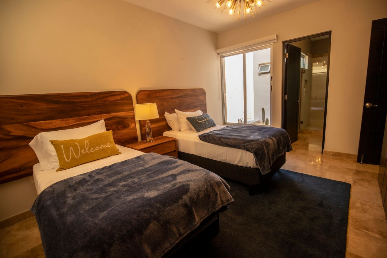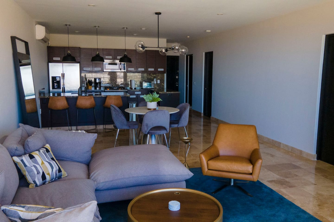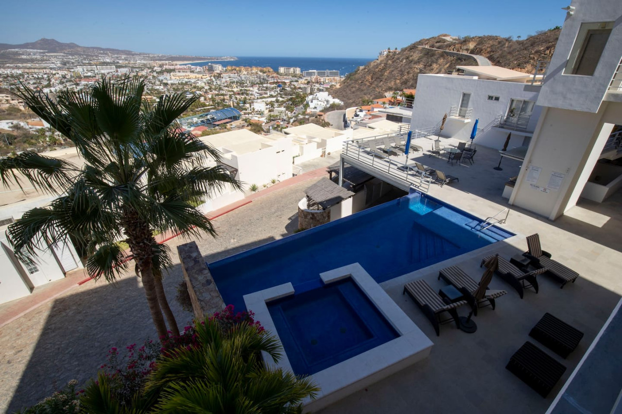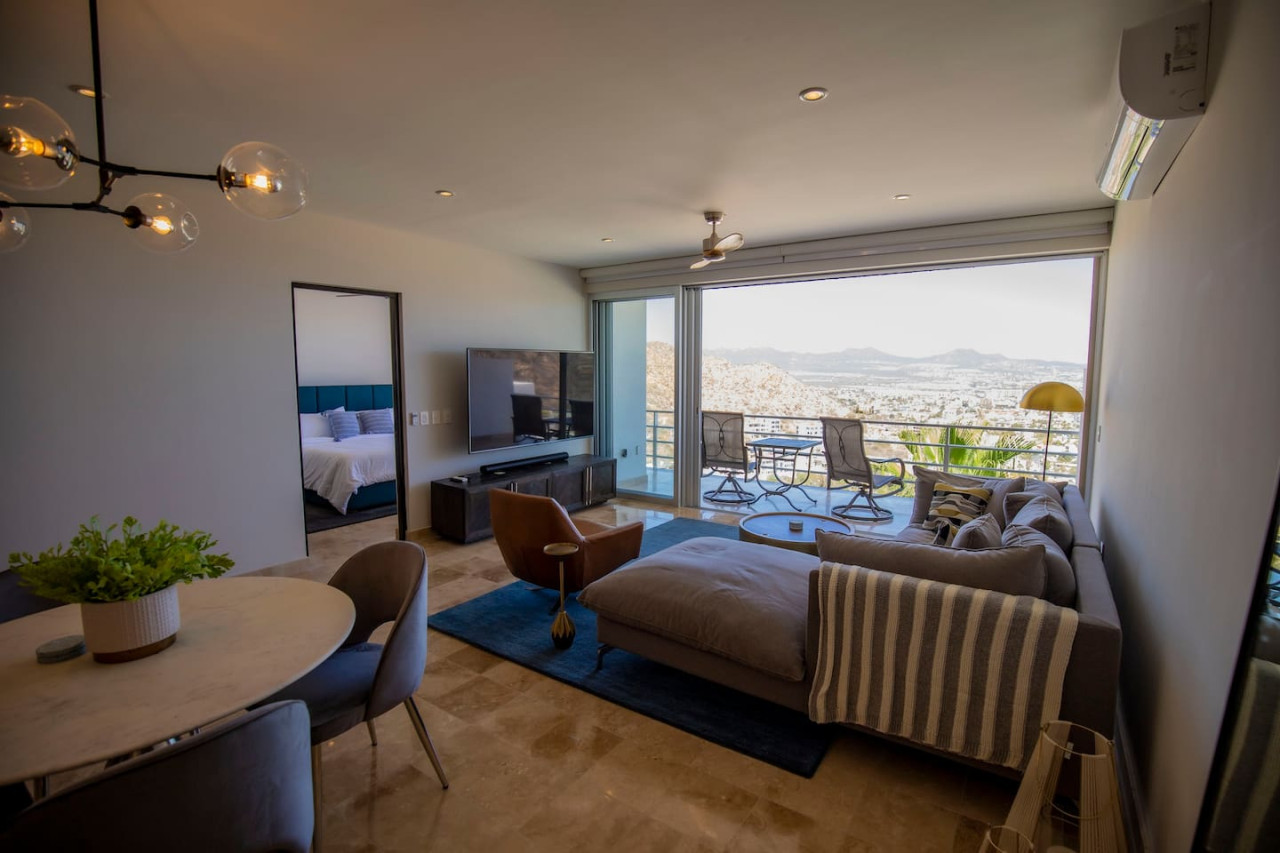 Stunning contemporary 2 bedroom condo in Pedregal with an awesome ocean view! Clean and modern condo just steps away from a tranquil pool and downtown Cabo. It's a 15-20 minute leisurely walk to downtown Cabo, the marina, and Cabo Wabo restaurant. It's a 10-minute walk to famous restaurants like Casa Martin and La Vista. Walking distance to a farmers market.Close to the Waldorf Astoria Pedregal (an award-winning resort). It’s Uber and Uber Eats accessible.