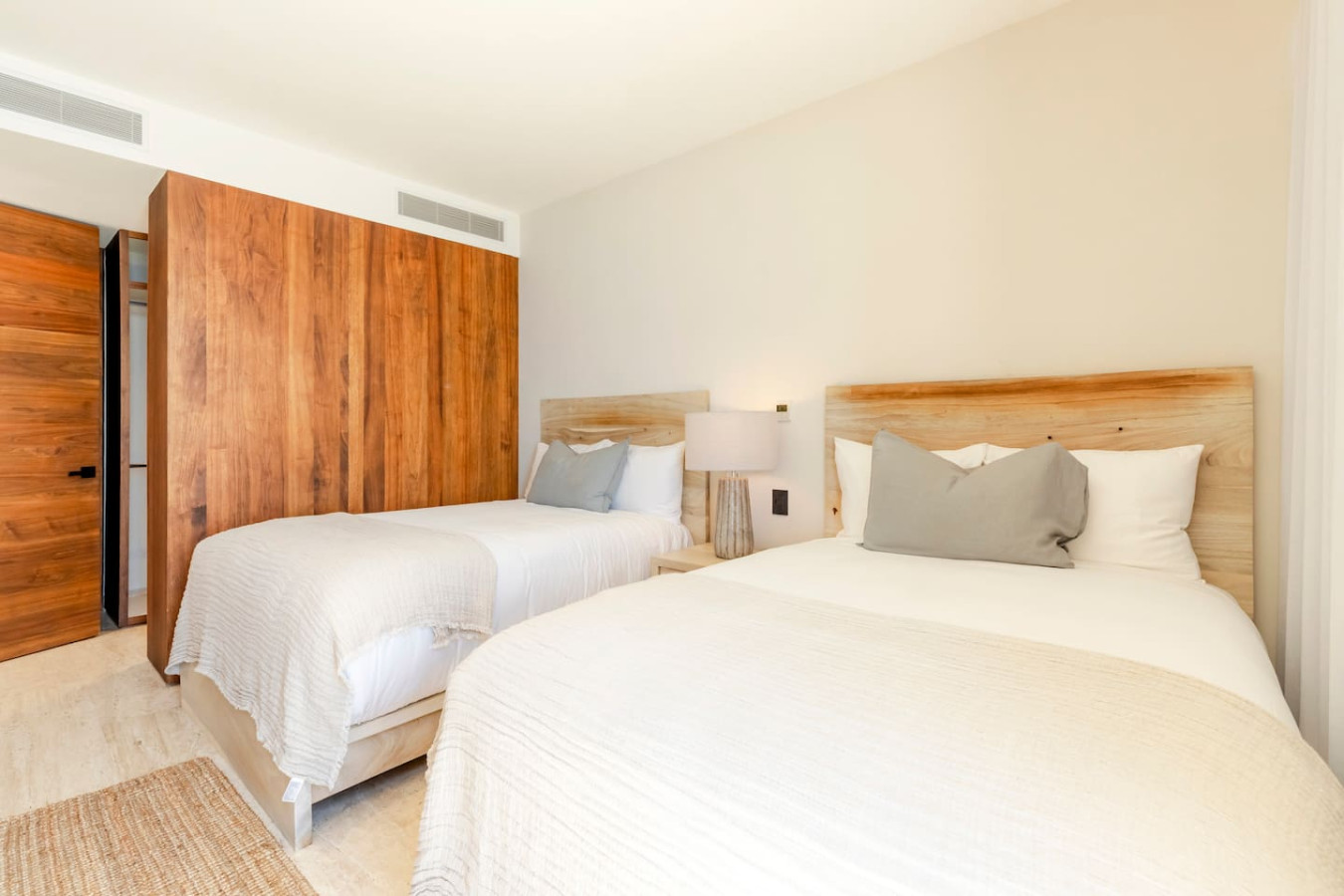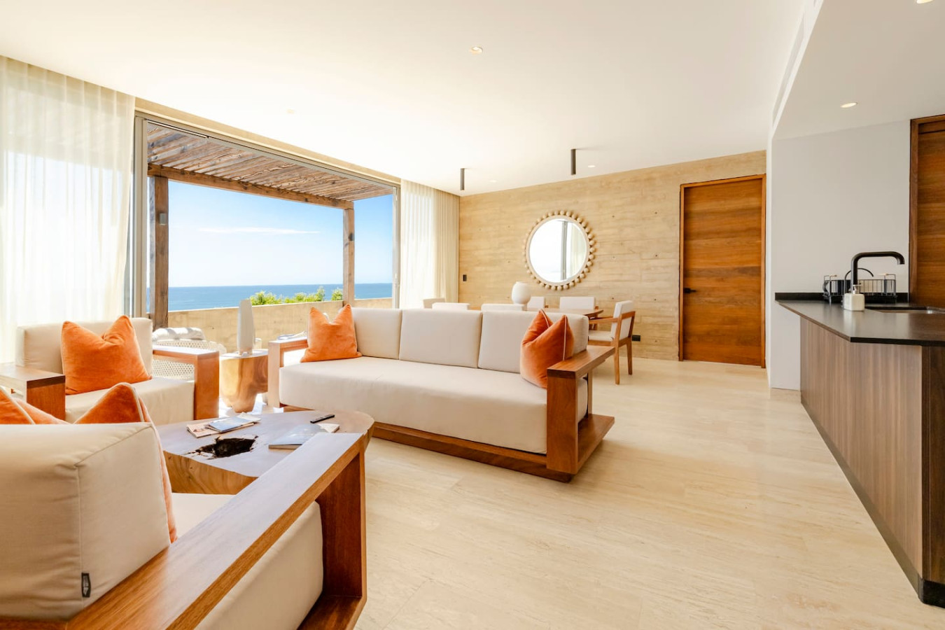 Located just 2 minutes away from Palmilla and Querencia, this exceptional property features a minimalist blend of natural elements set against the eye-opening beauty of the Sea of Cortez. Breath-taking, 220° views of colourful ocean, golden sunrises, and stunning sunsets. All in a beautiful condo with the best view of San Jose. Two minute drive from Palmilla and Querencia, three surfable beaches, restaurants and everything you need for an amazing stay. Private plunge pool to relax and enjoy drink of preference, large terrace with exterior seating to ensure guests have amazing moments while enjoying company of loved ones. All bedrooms have ocean views. A common gathering place for guests, the impressive infinity pool and sundeck rooftop. A security entry gate and security system ensure peace of mind. We do recommend to have a car, beach is a 10 min walk or a 2 min drive. • Bedroom 1: 🛏️ King, 🚿 En Suite Bath, 👗 Walk-in Closet, 🌊 Ocean View, 🌅 Terrace Access, ❄️ A/C • Bedroom 2: 🛌 Two Double Beds, 🚿 En Suite Bath, 🌊 Ocean View, 🌅 Terrace Access, ❄️ A/C • Kitchen/Living Room: 🍽️ Full kitchen, 🍴 Dining room (6 ppl), 🌅 Terrace Access • 🏊♂️ Plunge Pool, 🍽️ Exterior Lunch Table, 🪑 Exterior Seating Area Exterior Amenities: • 🌴 Common area infinity pool with 🌊 ocean views and ☀️ sundeck on rooftop • 🍔 Common area exterior grill and 🪑 seating to enjoy any meal during the day • 🏋️♀️ Indoor Gym • 🚗 Five-minute drive to downtown San Jose • 🚙 Two-minute drive to Palmilla and Querencia We won’t be available in person but are happy to help through the Airbnb app anytime. One of our team members may assist you if needed. Property is located in Gringo Hills community. Quiet neighborhood with amazing views of the sea of cortez. Property has free parking, having a car or a van will be a good idea to get around San Jose * Daily cleaning service available under request for a daily fee