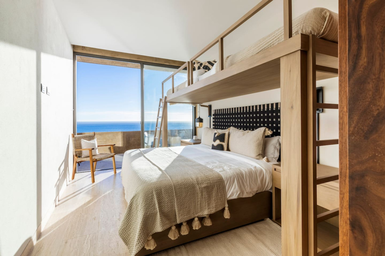 Located just 2 minutes away from Palmilla and Querencia, this exceptional property features a minimalist blend of natural elements set against the eye-opening beauty of the Sea of Cortez. Breath-taking, 220° views of colourful ocean, golden sunrises, and stunning sunsets. All in a beautiful condo with the best view of San Jose. Two minute drive from Palmilla and Querencia, three surfable beaches, restaurants and everything you need for an amazing stay. Private plunge pool to relax and enjoy drink of preference, large terrace with exterior seating to ensure guests have amazing moments while enjoying company of loved ones. All bedrooms have ocean views. A common gathering place for guests, the impressive infinity pool and sundeck rooftop. A security entry gate and security system ensure peace of mind. We do recommend to have a car, beach is a 10 min walk or a 2 min drive. 🛏️ Bedrooms Bedroom 1: 👑 King bed · 🛁 En suite bathroom · 🌊 Ocean view · 🚪 Terrace access · ❄️ A/C Bedroom 2: 👑 King bed + 🛏️ Two individual top bunk beds · 🚿 Hallway bathroom · 🌊 Ocean view · 🚪 Terrace access · ❄️ A/C Bedroom 3: 👑 King bed + 🛏️ Two individual top bunk beds · 🚿 Hallway bathroom · 🌊 Ocean view · 🚪 Terrace access · ❄️ A/C 🍽️ Kitchen & Living Area. Fully equipped kitchen · Dining table for 8 · 🚪 Direct terrace access 🏖️ Outdoor Features 💦 Private plunge pool 🍽️ Outdoor lunch table 🛋️ Exterior seating area 🌟 Shared Amenities 🌅 Rooftop infinity pool with stunning ocean views & sundeck 🔥 Outdoor grill & dining area — perfect for any time of day 🏋️♂️ Fully equipped indoor gym 🚗 5-minute drive to downtown San José del Cabo 🌴 2-minute drive to Palmilla & Querencia golf and beach clubs We won’t be available in person but are happy to help through the Airbnb app anytime. One of our team members may assist you if needed. Property is located in Gringo Hills community. Quiet neighborhood with amazing views of the sea of cortez. Property has free parking, having a car or a van will be a good idea to get around San Jose. * Daily cleaning service available under request for a daily fee